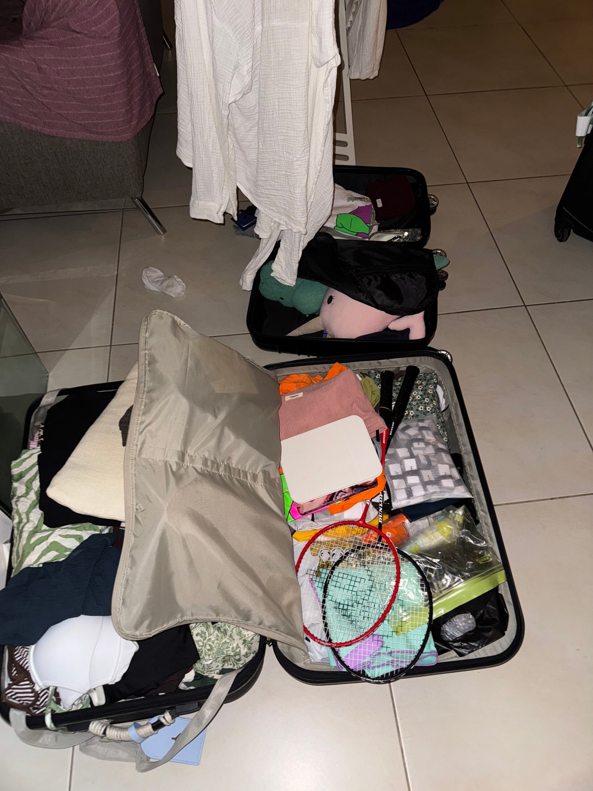 Der Tag den wir alle nicht so richtig wahrhaben wollten stand an. Morgens um halb acht trafen wir also wieder in unserem Häuschen ein. So setzten wir uns erstmal aufs Sofa, schmollten und Alena kühlte ihren Ausschlag verständlicherweise nochmals. Da wir uns alle nicht sonderlich wohl fühlten, wie auch an so einem Tag, machten wir uns erstmal eine Pizza. Danach zwangen wir uns kurzerhand alles was wir konnten einzupacken und etwas aufzuräumen bevor wir chillen konnten. Die Musik wurde eingeschaltet und es ging schon alles ein kleines, kleines, wirklich nur sehr kleines bisschen einfacher. Alex fühlte sich gar nicht gut, weshalb sie noch ein Schläfchen auf dem Sofa hielt. Für einen kurzen Moment verschwand Luan dann und fütterte die WC-Enten ausgiebig. Spülen, Zähne putzen, weiter machen. Die Küche wurde aus und aufgeräumt, unsere Betten wieder in Position gebracht (an dieser Stelle, Respekt an Luan, dass sie das riesige Möbel alleine durch den Gang gebracht). Alena brachte den Müll in der morgen Hitze nach draussen und verabschiedete sich noch von den Katzen. Die grosse Überraschung kam dann, als wir die Koffer neben der Treppe hervor nahmen. Darunter durften wir gleich drei tote Kakarlaken finden. Aber lieber tot als herumirrend. Die Koffer wurden voller und voller und wir Helden hatten vergessen die Kofferwaage mitzunehmen. Also wurde nun geschätzt und gehofft, dass wir später keinen Aufpreis zahlen müssen.